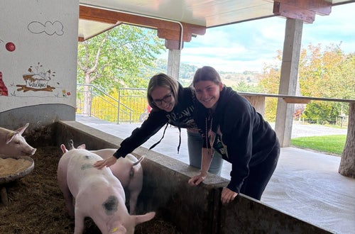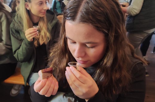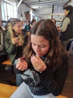 Kulinarik pur hieß es am Donnerstag: Der Tag begann mit einer Führung durch die Vulkanoschinken- und Essigmanufaktur Gölles, wo die Schülerinnen interessante Einblicke in die Veredelung regionaler Produkte erhielten. Am Nachmittag folgte die Besichtigung des Direktvermarkters Hebenstreit, der mit seinem vielfältigen Angebot an bäuerlichen Spezialitäten überzeugte. Den stimmungsvollen Ausklang bildete eine Weinverkostung mit Marende im Buschenschank Bernhart unterhalb der Riegersburg – ein geselliger Abend mit regionalen Köstlichkeiten und herrlichem Ausblick.