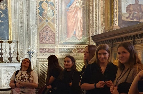 Il nostro viaggio è iniziato con una visita a Siena, dove abbiamo ammirato Piazza del Campo e il Duomo. I ragazzi hanno avuto la possibilità di conoscere le antiche tradizioni di questa città medievale e di respirare l'atmosfera storica che la contraddistingue. Un’esperienza indimenticabile è stata la visita a Firenze: tra la maestosa Cattedrale di Santa Maria del Fiore, il Ponte Vecchio e la straordinaria Piazza della Signoria, i nostri studenti hanno scoperto l’arte e la storia che hanno fatto di questa città una culla della cultura rinascimentale.